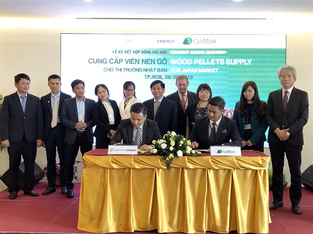 Eastwood Energy JSC signs a long-term contract with CellMark to sell a minimum of 300,000 tonnes of wood pellets a year from 2021 for export to Japan in HCM City on August 8. — VNS Photo