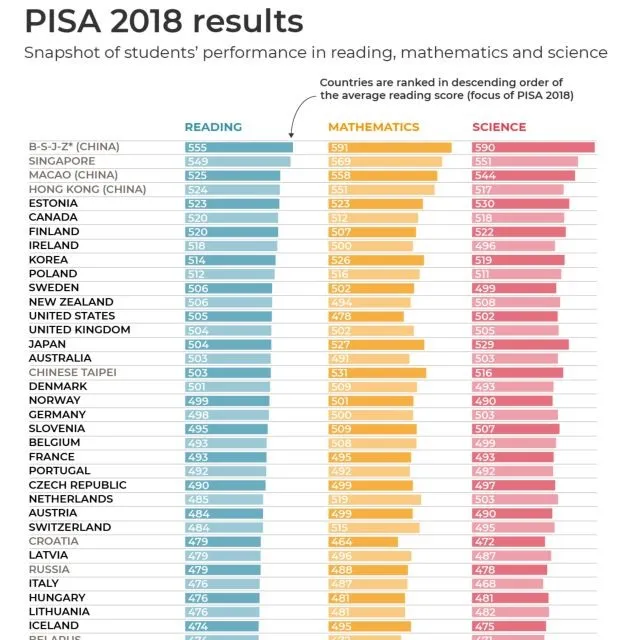 Following the PISA 2018 ranking, Asian countries once again came out on top. China and Singapore rank first and second, South Korea ranks 9th and Japan ranks 15th.