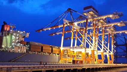 Tân Cảng-Cái Mép International Terminal, the second largest container port in Việt Nam. Seaport stocks were on an upswing. Tân Cảng Warehousing Joint Stock Company (TCW) hit the daily limit rise of 7 per cent. — Photo bariavungtau.com.vn