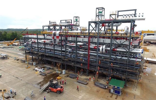 Workers at Doosan Việt Nam Heavy Industry in Dung Quất Economic Zone in central Quảng Ngãi Province. Việt Nam's GDP growth is expected to stay on course despite a broad decline for the East Asia and Pacific region. — VNA Photo