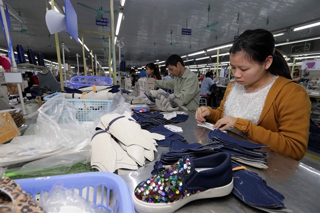 Shoes are finalised at Hà Tây Chemical Weave Co Ltd in Hà Nội's Hoài Đức District for export. Shoes are among a number of exports to the European Union that may not enjoy early ratification of trade deals. — VNA/VNS Photo Trần Việt