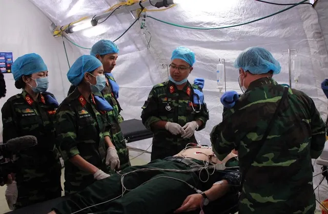 Medical officers of the field hospital level 2, the first Vietnamese delegation to take part in the United Nations peacekeeping mission in South Sudan, during a medical training class. — VNA/VNS Photo Nguyễn Xuân Khu |