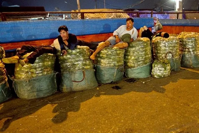Migrant workers at a wholesale market in Hà Nội. — Photo cholaodonghn